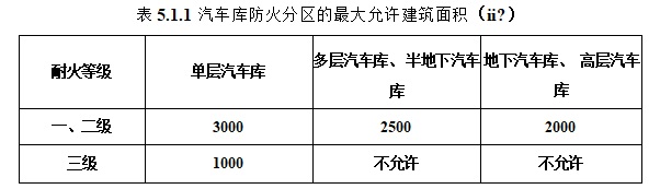 5.1.1 汽车库防火分区的最大允许建筑面积应符合表5.1.1的 规定。其中,敞开式、错层式、斜楼板式汽车库的上下连通层面积 应叠加计算,每个防火分区的最大允许建筑面积不应大于表5.L 1 规定的2.0倍;室内有车道且有人员停留的机械式汽车库,其防火 分区最大允许建筑面积应按表5.1.1的规定减少35%。