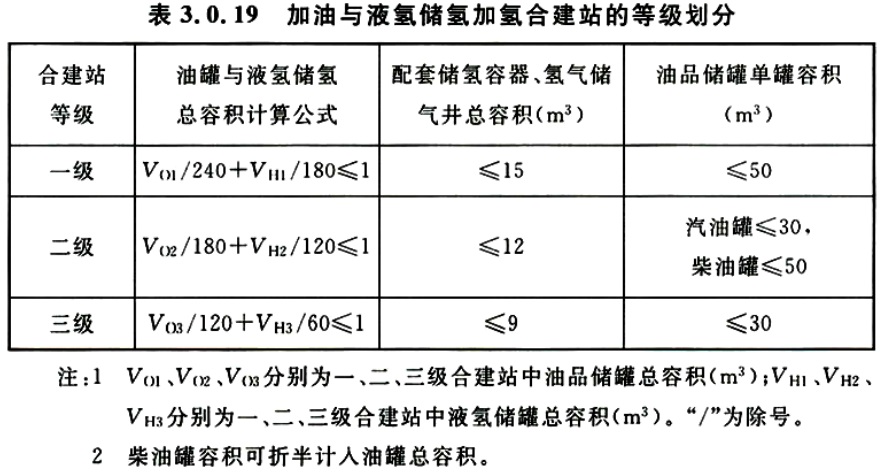 3.0.19 加油与液氢储氢加氢合建站的等级划分应符合表3.0.19的规定。