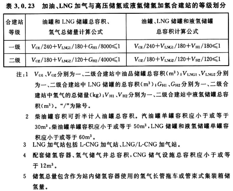 3.0.23 加油、LNG加气与高压储氢或液氢储氢加氢合建站的等级划分,应符合表3.0.23的规定。