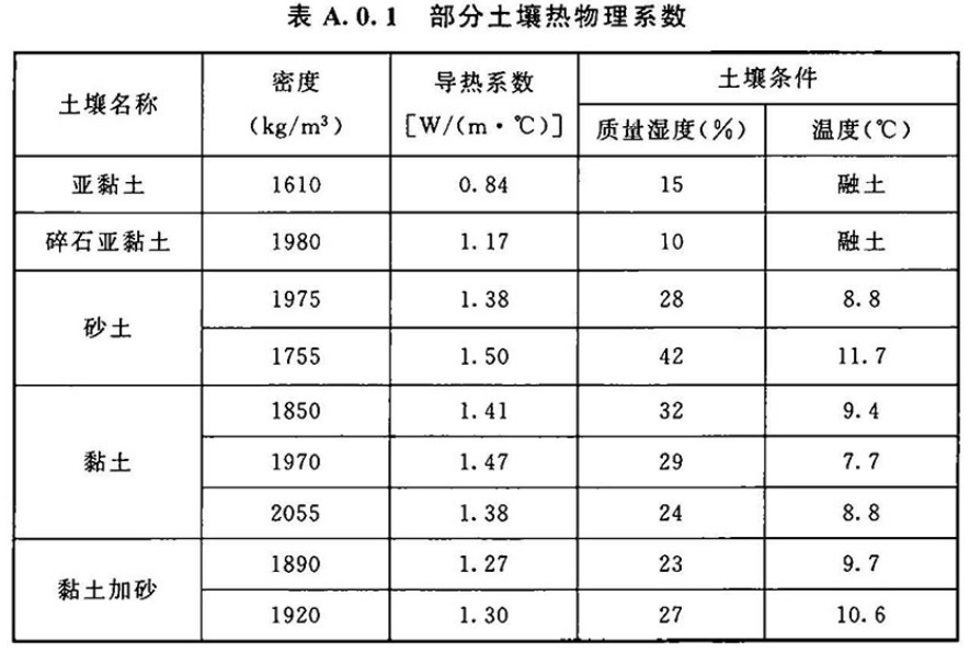 A.0.1 供暖地区地面防冻的加热计算应采用稳定传热计算公式。部分土壤热物理系数宜按表A.0.1的规定确定。