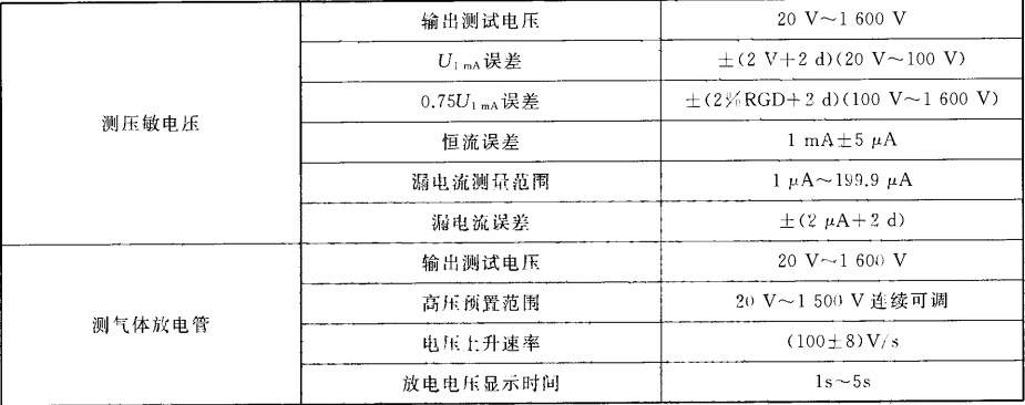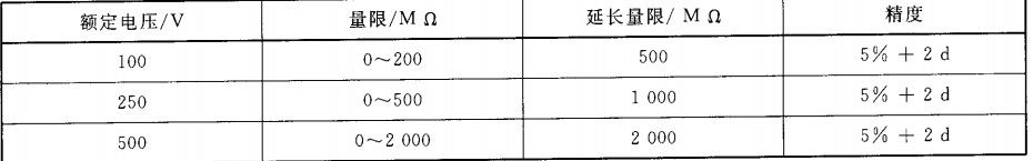 C.5.2兆欧表或绝缘电阻测试仪主要技术参数
