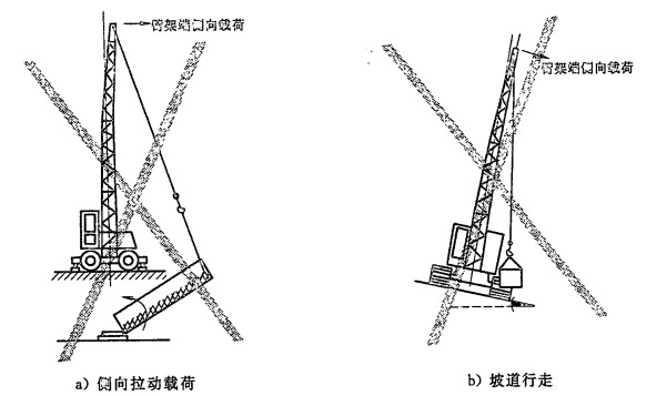 起重机做起升、回转、变幅或运行等动作时,不能使钢丝绳偏离垂直位置沿地面拖动载荷。起升载荷以前,起重绳应呈铅垂状(见图3)。不注意这些情况可能会严重影响起重机的稳定性或对起重机施加设计外的载荷(应力),即使安装了超载限制器,在没有任何督报的情况下也可能会发生起重机结构的 损坏。