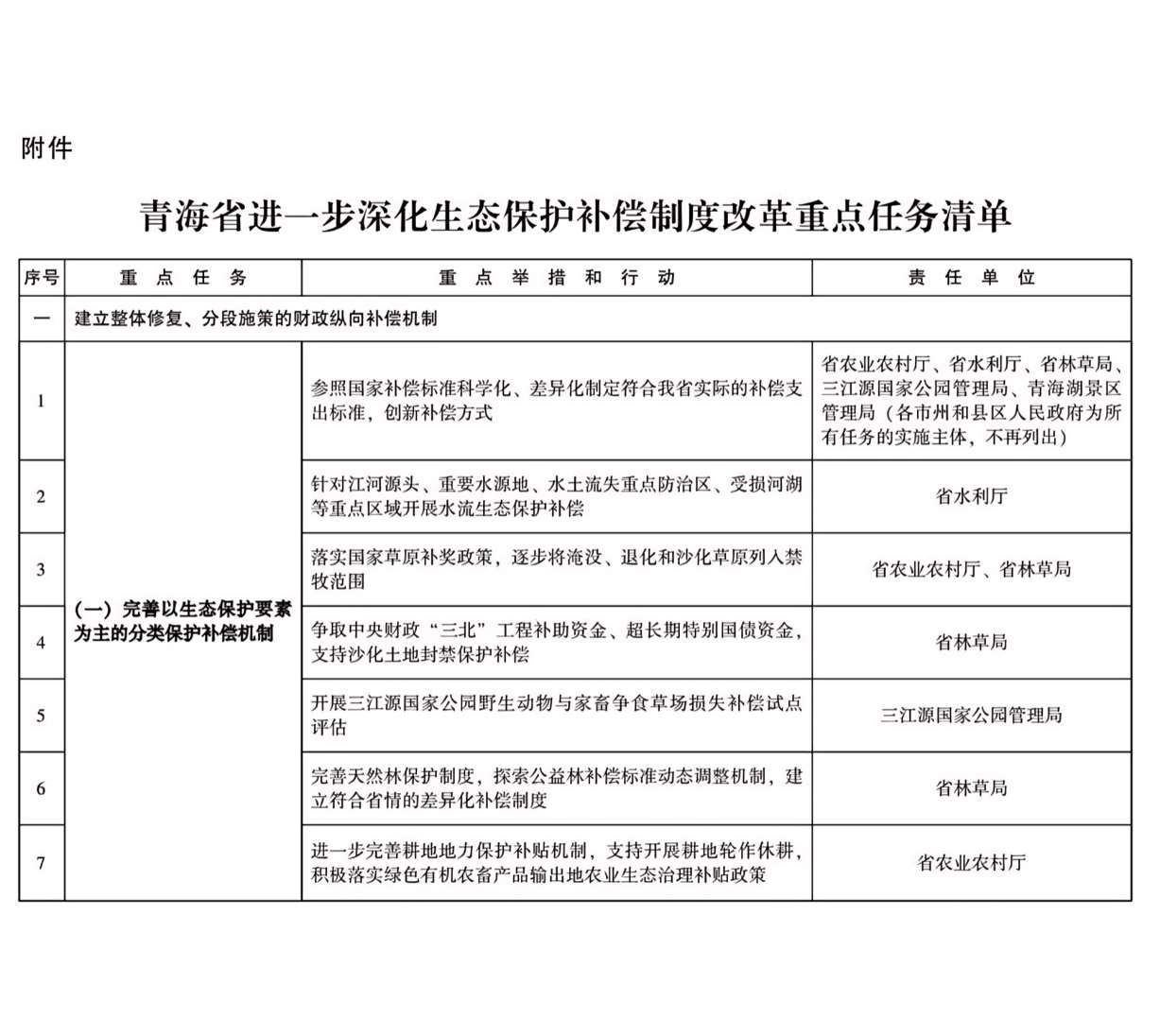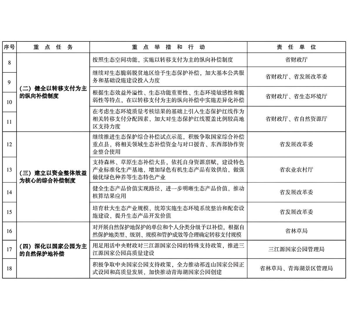 青海省人民政府办公厅关于印发青海省进一步深化生态保护补偿制度改革实施方案的通知-环安宝@法规宝