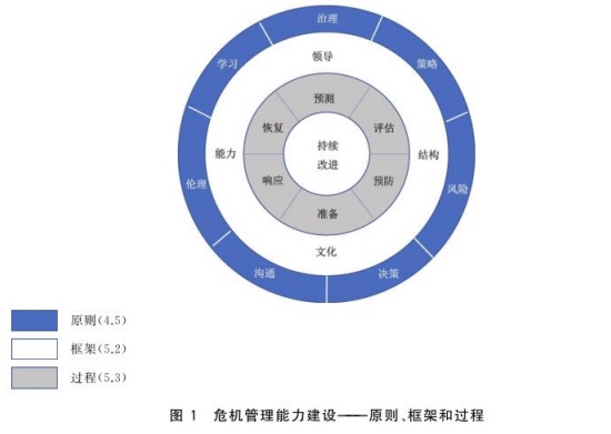 组织宜遵循一套原则来建立危机管理框架,采用结构化的方法来进行危机管理。这些相互关联的原则、框架和适用的过程要素,支持有目的的、一致的和严格的方式实施危机管理能力(见图1)。