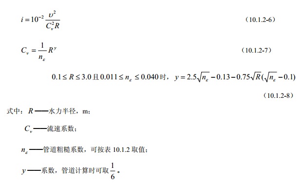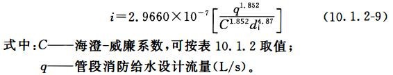 10.1.2 消防给水管道单位长度管道沿程水头损失应根据管材、水力条件等因素选择,可按下列公式计算: