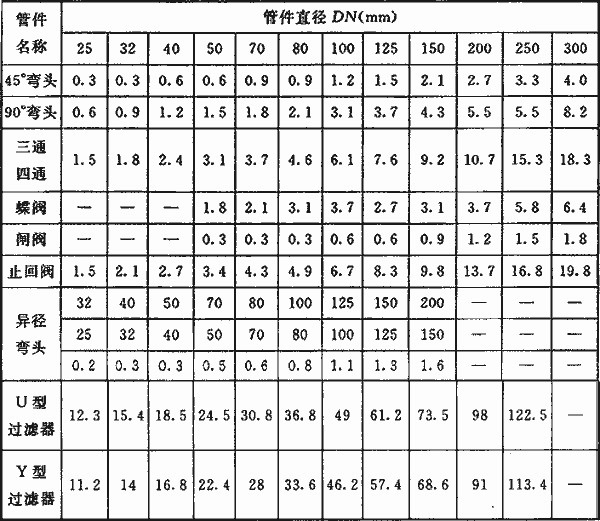 3 表中没有提供管件和阀门当量长度时,可按10.1.6-2提供的参数经计算确定。
