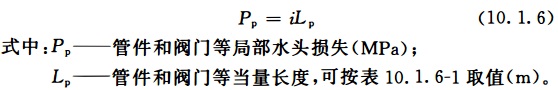 L——管道直线段的长度(m)。10.1.6 管道局部水头损失宜按下式计算。当资料不全时,局部水头损失可按根据管道沿程水头损失的10%~30%估算,消防给水干管和室内消火栓可按10%~20%计,自动喷水等支管较多时可按30%计。