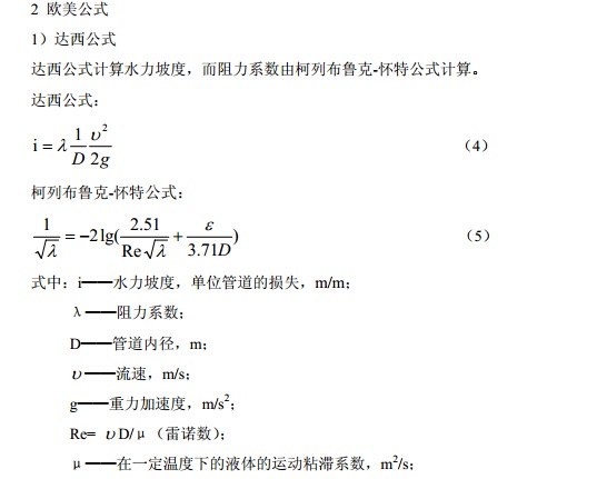 我国在21世纪以前给水系统水力计算通常采用前苏联舍维列夫公式,随着2003年版的国家标准《建筑给水排水设计规范》GB 50015-2003采用欧美常用的海澄威廉公式后,2006年版国家标准《室外给水设计规范》GB 50013-2006采用达西等欧美公式后,我国给水排水已经基本不采用前苏联舍维列夫公式,本规范综合我国现行规范,采用达西等水力计算公式。沿程水头损失的计算公式很多,基本是前苏联的舍维列夫公式和欧美公式。