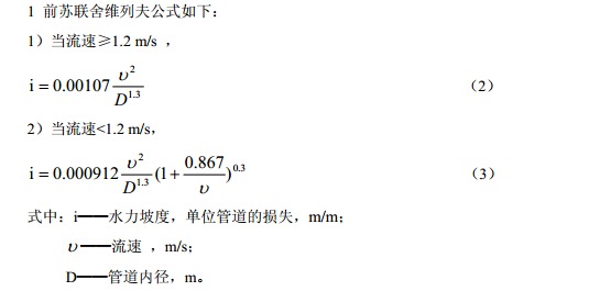 1 消防给水管道或室外塑料管可采用下列公式计算: