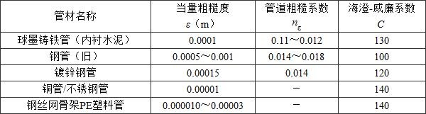 ε——当量粗糙度,可按表10.1.2取值(m);