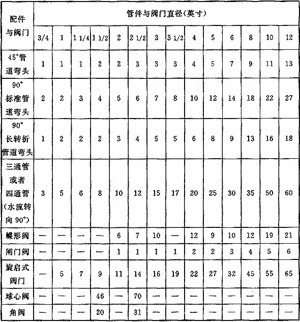 表6 阀门和管件的同等管道当量长度表(英尺)