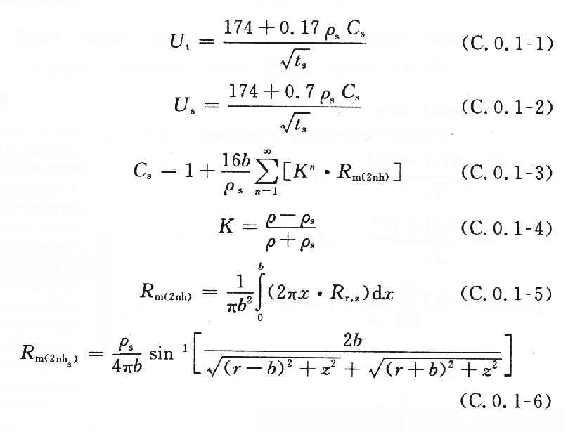 C.0.2 工程中对地网上方跨步电位差和接触电位差允许值的计算精度要求不高(误差在5%以内)时,也可采用下式计算: