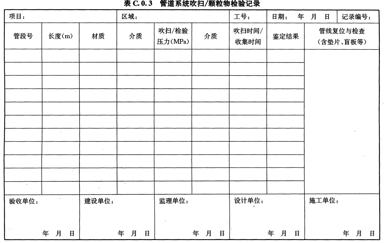 C.0.3 医用气体施工中管道系统吹扫/颗粒物检验记录可按表C.0.3的格式进行。