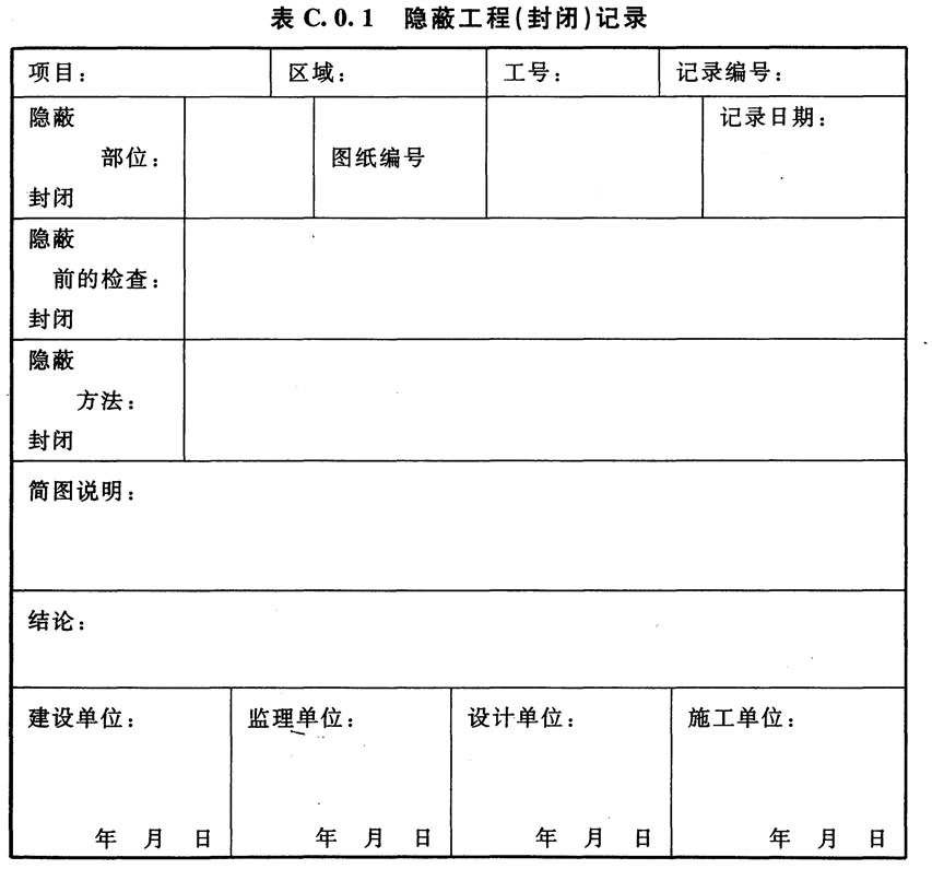 C.0.1 医用气体施工中的隐蔽工程(封闭)记录可按表C.0.1的格式进行。
