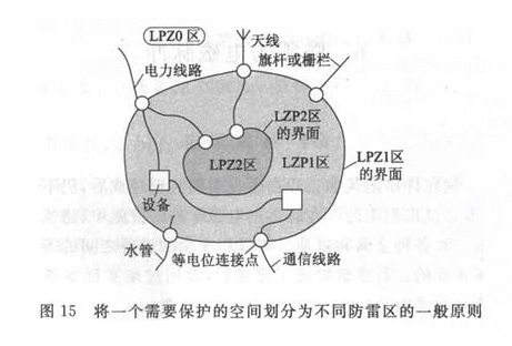 将需要保护的空间划分成不同防雷区的一般原则见图15。